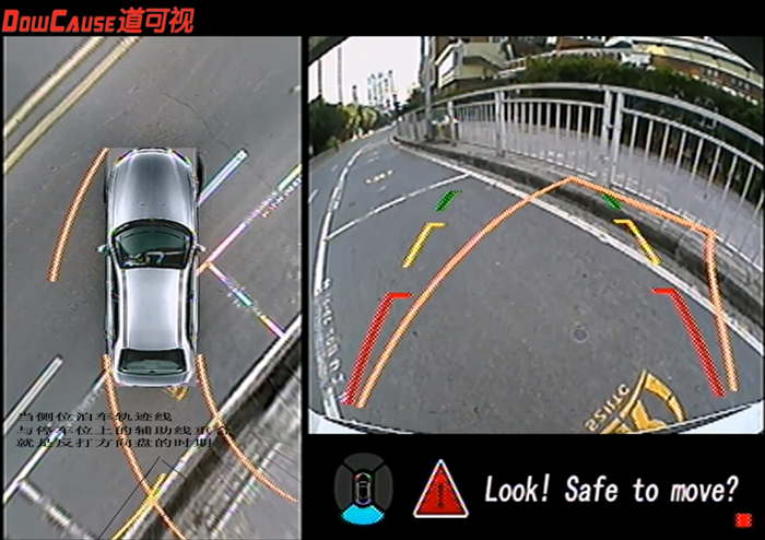 行車容易,倒車難。倒車不知道難倒了多少新老司機(jī),這句話是經(jīng)過了多少代新老司機(jī)的經(jīng)歷后總結(jié)的至理名言。之所以倒車難,原因有二,1、倒車時(shí)僅僅通過后視鏡無法看清車后情況;2、方向盤不知道打多少?什么時(shí)候打?該往左還是往右打。解決了這兩個(gè)這個(gè)問題,倒車難和存在看不到的盲區(qū)就迎刃而解。下面來看道可視3D全景行車輔助系統(tǒng)是如何解決:道可視的這套系統(tǒng)擁有四路高清廣角攝像頭,分別安裝在車身前后左右。大廣角,輕松覆蓋了車身周圍所有場景,做到360度全景無死角無縫,經(jīng)過控制主機(jī)核心算法“達(dá)芬奇”的拼接矯正處理,將車身周圍場景真實(shí)的顯示在車載DVD顯示屏上。解決了倒車時(shí)看不請車后情況的難題。