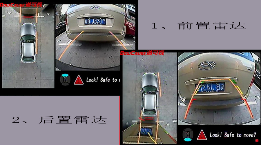 道可視360度全景行車輔助系統(tǒng)增加了全新的前置/后置雷達(可視倒車?yán)走_),當(dāng)靠近其他車輛或障礙物時,在車載DVD上可以清楚的看到雷達提示,有效的避免發(fā)生碰撞。