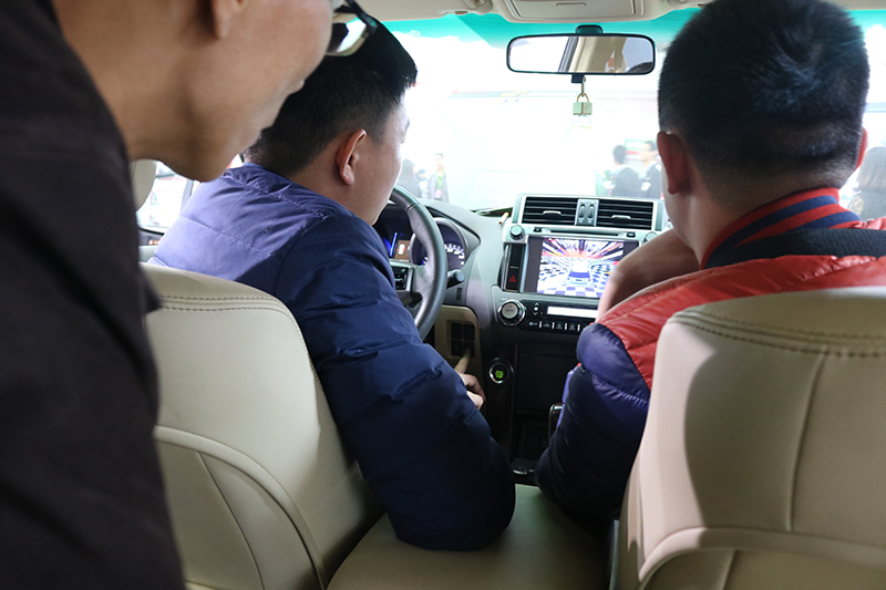 道可視這次展會(huì)主推的超清360度全景影像系統(tǒng),其清晰度達(dá)到1080P。不僅僅是清晰度的提升,更解決了因?yàn)橐挂暷芰Σ蛔愣_車主的夜間泊車、倒車難題;四路攝像頭實(shí)時(shí)錄像,智能震動(dòng)鎖定技術(shù),3D全景泊車,24小時(shí)不間斷泊車監(jiān)控等功能吸引了一大批客商的駐足參觀,在展車體驗(yàn)過程中對我們?nèi)诵曰腢I交互設(shè)計(jì)和便捷的功能操作贊賞有加。