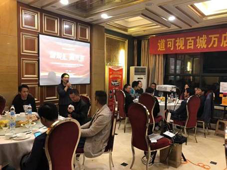 道可視區(qū)域經(jīng)理雷玉杰隨后上臺便為現(xiàn)場來賓,帶來了更詳細的聯(lián)盟店招商與產(chǎn)品培訓(xùn)。